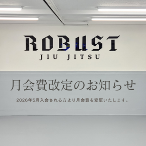 近年の物価上昇や設備費の高騰に伴い、現行の月会費を維持することが難しい状況となっております。そのため、大変心苦しいのですが、月会費を改定させていただくことになりました。皆様の健康維持、運動不足解消の一助を目的とし、ROBUST柔術での練習をさらにサポートさせて頂けるように努めて参りたいと考えおります。料金改定につきましては何卒ご理解のほどお願いいたします。