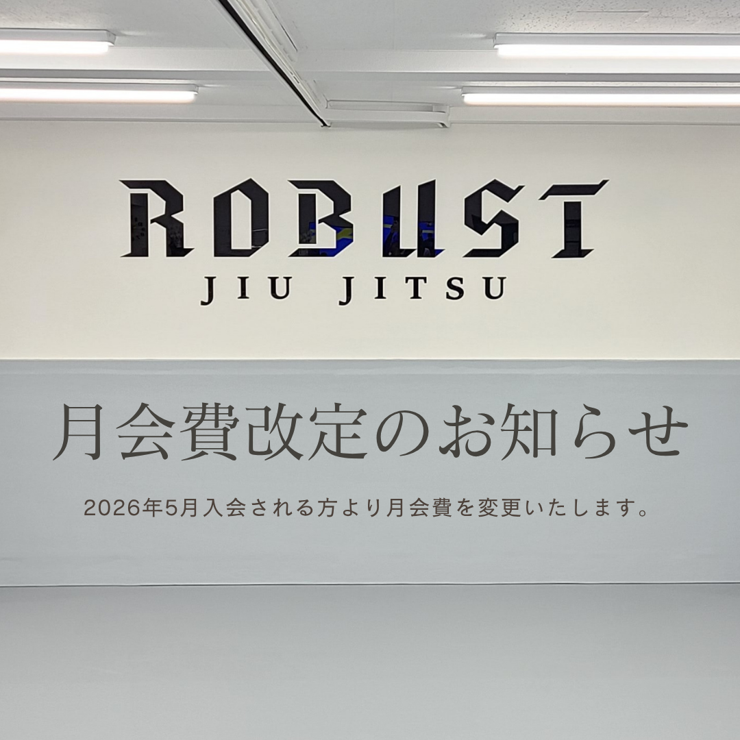 近年の物価上昇や設備費の高騰に伴い、現行の月会費を維持することが難しい状況となっております。そのため、大変心苦しいのですが、月会費を改定させていただくことになりました。皆様の健康維持、運動不足解消の一助を目的とし、ROBUST柔術での練習をさらにサポートさせて頂けるように努めて参りたいと考えおります。料金改定につきましては何卒ご理解のほどお願いいたします。